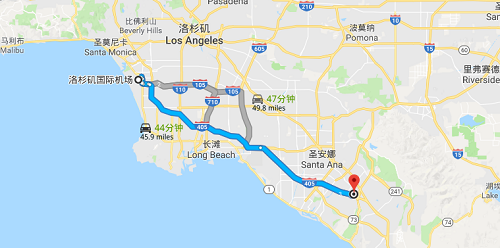 洛杉矶国际机场前往IRVINE明明试管婴儿医院路线图