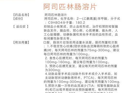 阿司匹林肠溶片使用注意事项:患者用量说明