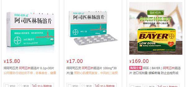 几块到十几块不等!10大品牌阿司匹林购买价格均不贵