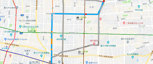 路线2:上敦化北路行驶700米,接着向北行驶,走八德路二段驶入中正区的新生南路一段;
