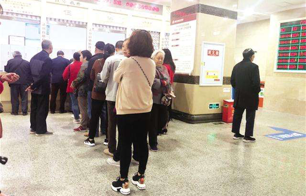 北医三院内排队挂号的患者