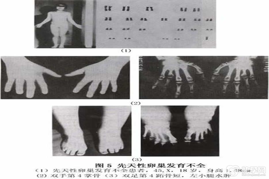 主要症状有女孩生长、发育迟缓,身材矮小,卵巢异常,甚至还可出现其他器官的异常,但往往智力发育正常。大多数特纳综合征妇女不孕,症状较轻的嵌合型患者能够受孕,但流产、死胎、胎儿异常核型发生率高。