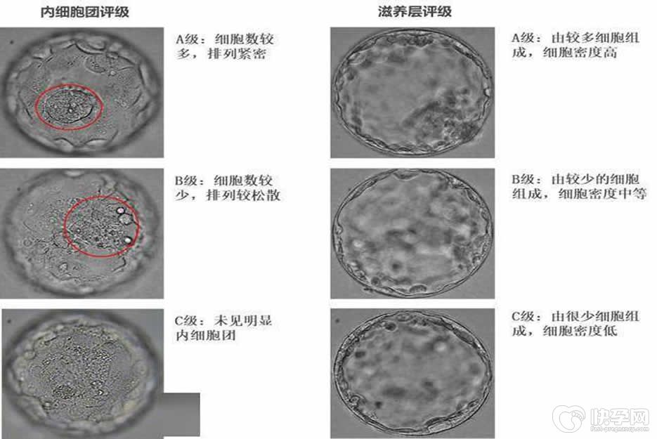 处于3至6期的囊胚,还需对其内细胞团和滋养层细胞进行质量分级,也就是后面两个字母所代表的含义。