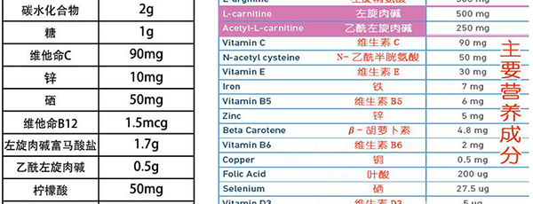 勃锐精组成成分一览(左图男版,右图女版)