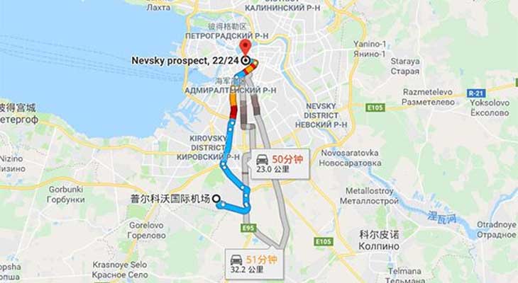 普尔科夫机场距离NGC大概有17公里,大家在到达俄罗斯普尔科夫机场之后,打车只需17分钟就可到达,另外,乘坐公交也是可以的,不过需要换乘。