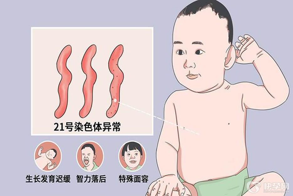唐氏综合征即21-三体综合征,又称之为先天愚型,是染色体异常而导致的疾病(多了一条21号染色体),在临床中有60%的患儿会在胎儿出现早期流产,及时存活至足月分娩,出生后也会表现为明显的智力落后、特殊面容、生长发育障碍以及多发畸形等。