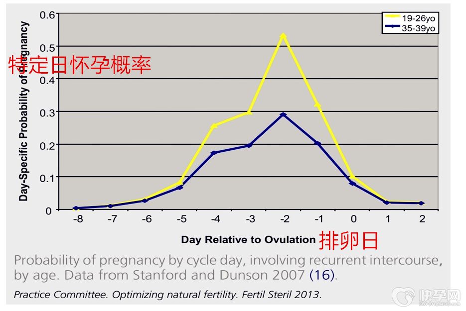 研究显示:在排卵前5天及排卵后24小时内同房都有怀孕的可能,其中排卵前1-2天同房怀孕几率最高(如图所示,图片中的0指的是排卵期,-1,-2 等指的是排卵前,1,2指的是排卵后)。这提示我们在备孕期间不能单纯只在排卵期同房,这样做怀孕几率并不高。有些育龄夫妇特意憋着,非得等到排卵期前后或者排卵期的时候才同房,反而不利于备孕。而且,如果只在排卵期同房一次的话,男方长时间不排精还会影响到精子的活力。