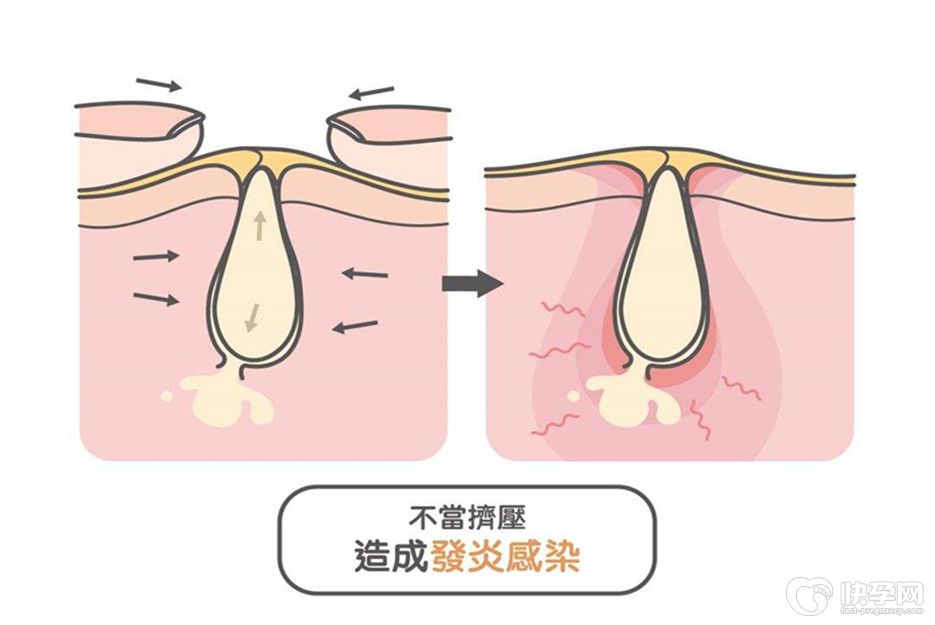1、不可用手挤捏