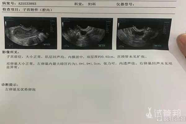 接着到超声检查区等做B超监测,其实已经分心了。医生把探头转了几圈,说:“左边有个卵泡,挺圆的,挺漂亮的,右边没有。” 我又连忙问道,什么时候再来。医生说如果没监测过,那就更频繁一点,而且我的卵泡已经有一定大小了,建议明天继续检查。