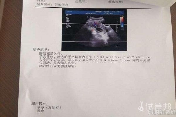 第二天测血值,hcg18-10、21天27110,30天做了第一次B超,被告知有两个孕囊,一个有胎心,一个只有卵黄囊!医生让一星期后复查另一个胎心,第37天,第二次B超,两个都有个胎心了!家人和我都高兴坏了!真的不知道怎么用言语形容!只希望自己的宝宝都能健健康康,平平安安。以上就是我试管的全部经历,最后希望圈里的姐妹们都好孕!