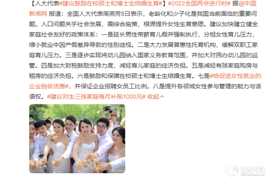 速看!代表建议鼓励在校硕士博士结婚生育,提高生育意愿势在必行