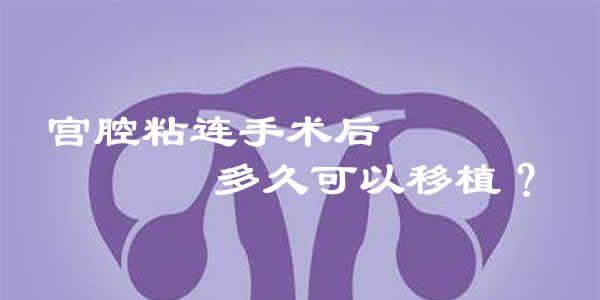 宫腔粘连术后建议是3-6个月后看情况再进行胚胎移植,术后需要给子宫内膜一个修复的时间,有的患者修复的快可能1-3个月,有的患者慢3-6个月,最快的也要2个月左右,宫腔粘连(IUA)又称Asheman综合征,是由于妊娠或非妊娠子宫的创伤,导致子宫内膜基底层受损,使宫腔部分或全部闭塞从而导致月经异常、不孕或反复流产等,其本质是内膜纤维化。胚胎着床是需要在子宫的,子宫环境不好,胚胎无法着床,也就无法怀孕成功,也就是说大多数进行胚胎移植的女性在宫腔镜术后或检查后月经来潮一次,理论上说明已建立了正常的月经周期,所以在此时也就可以进行移植了。