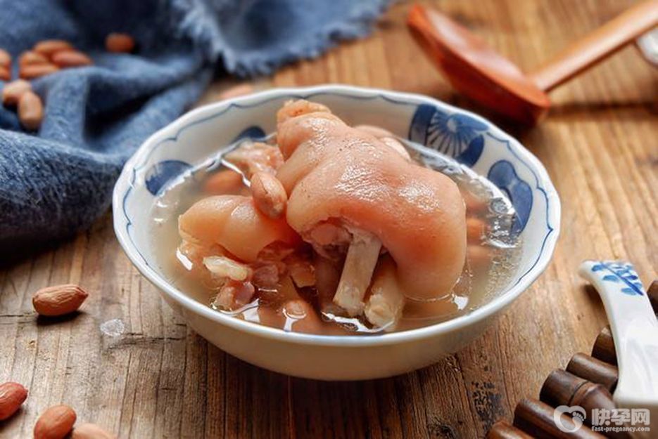 食材:花生100克、大枣10枚、猪蹄2只、盐适量。