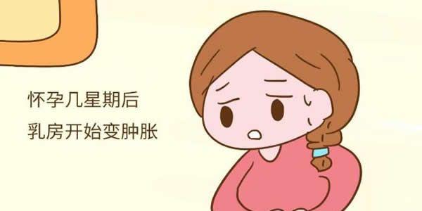 如果你的乳房感到刺痛、柔软又肿胀,晕颜色变深了,或是乳房上有蓝色和粉色的线条,这些不是你的想象,那可能是怀孕了。这种症状在受孕之后的前几天就可能出现。如果你在突然之间认不出自己的乳房就可能是怀孕了。不要担心!在你的身体适应大量的荷尔蒙之后,这种疼痛就会消退,乳房就不会再感到不舒服了。