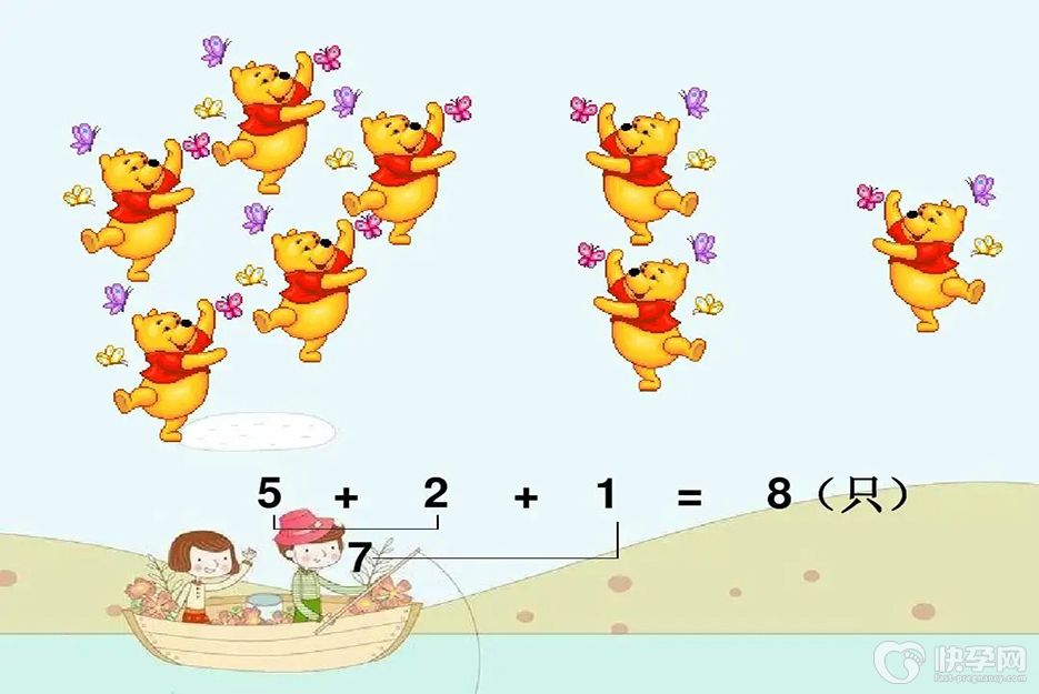 5、学会10以内的加法:孩子学会5以内的加法,可以慢慢的向两只手进行扩展,让孩子学习10以内的加法运算,让孩子自己慢慢的一步步的数着指头进行计算。